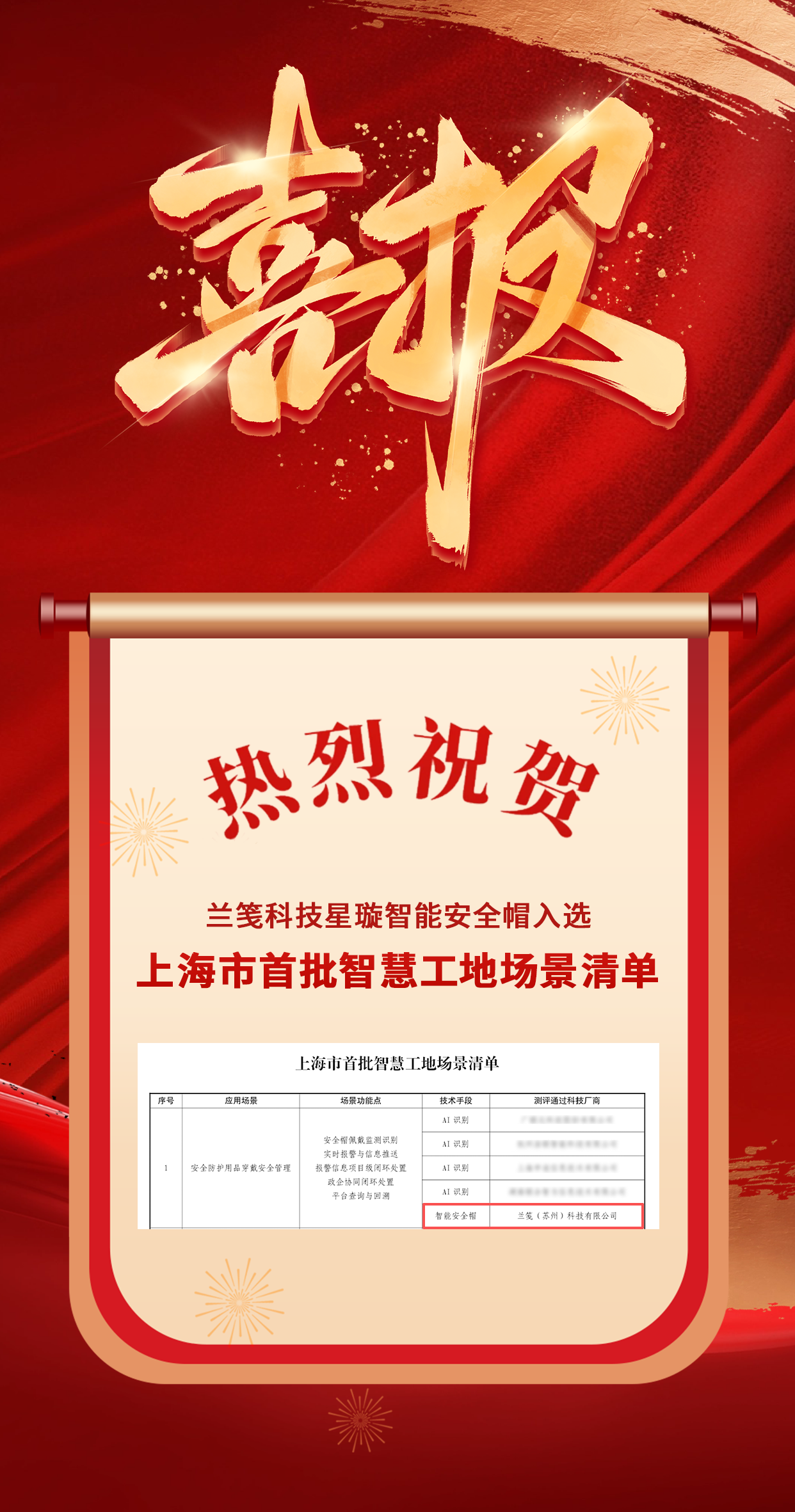 喜報(bào)!熱烈祝賀蘭箋科技入選江蘇省智慧工地應(yīng)用場景典型案例名單!